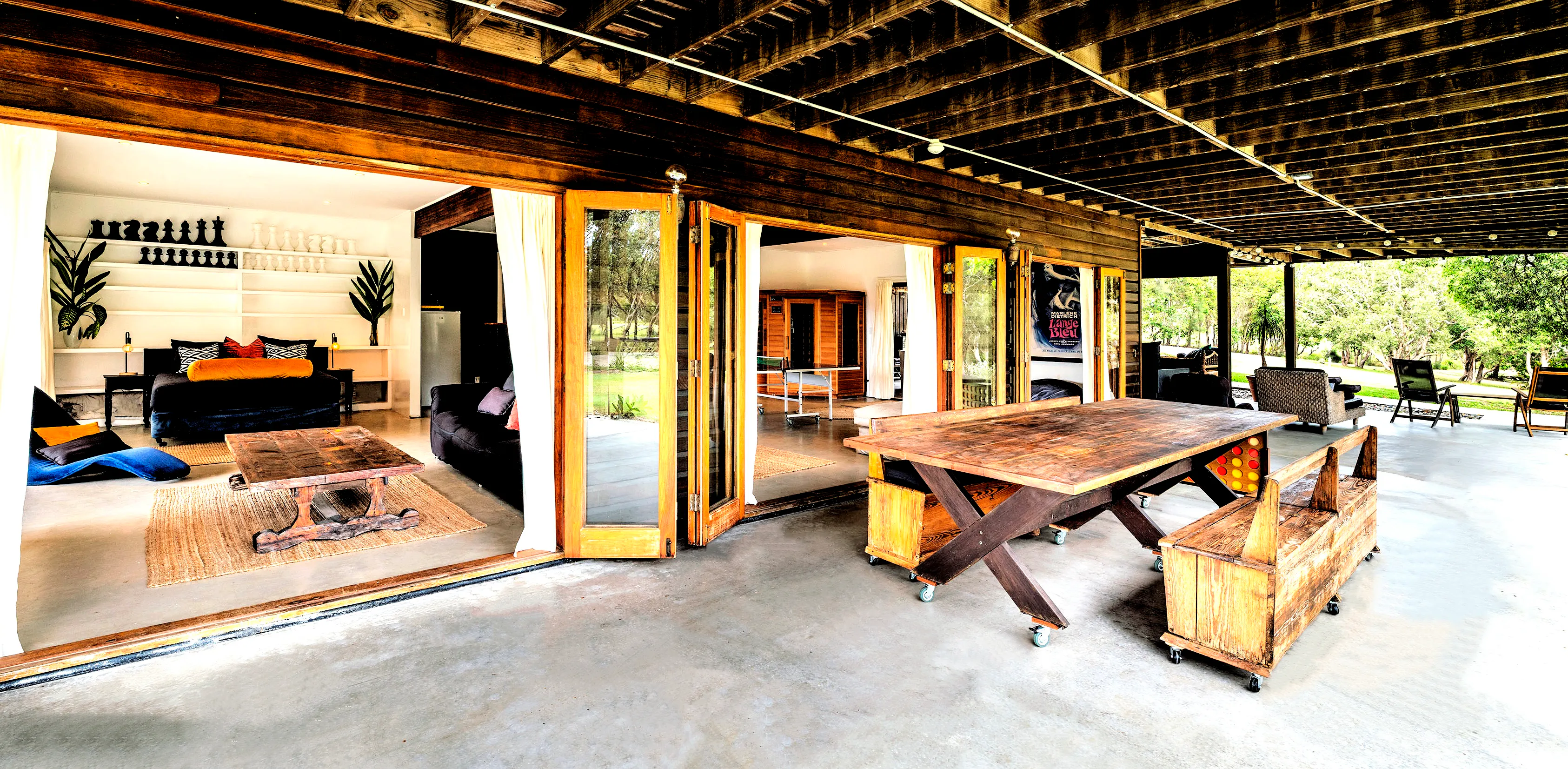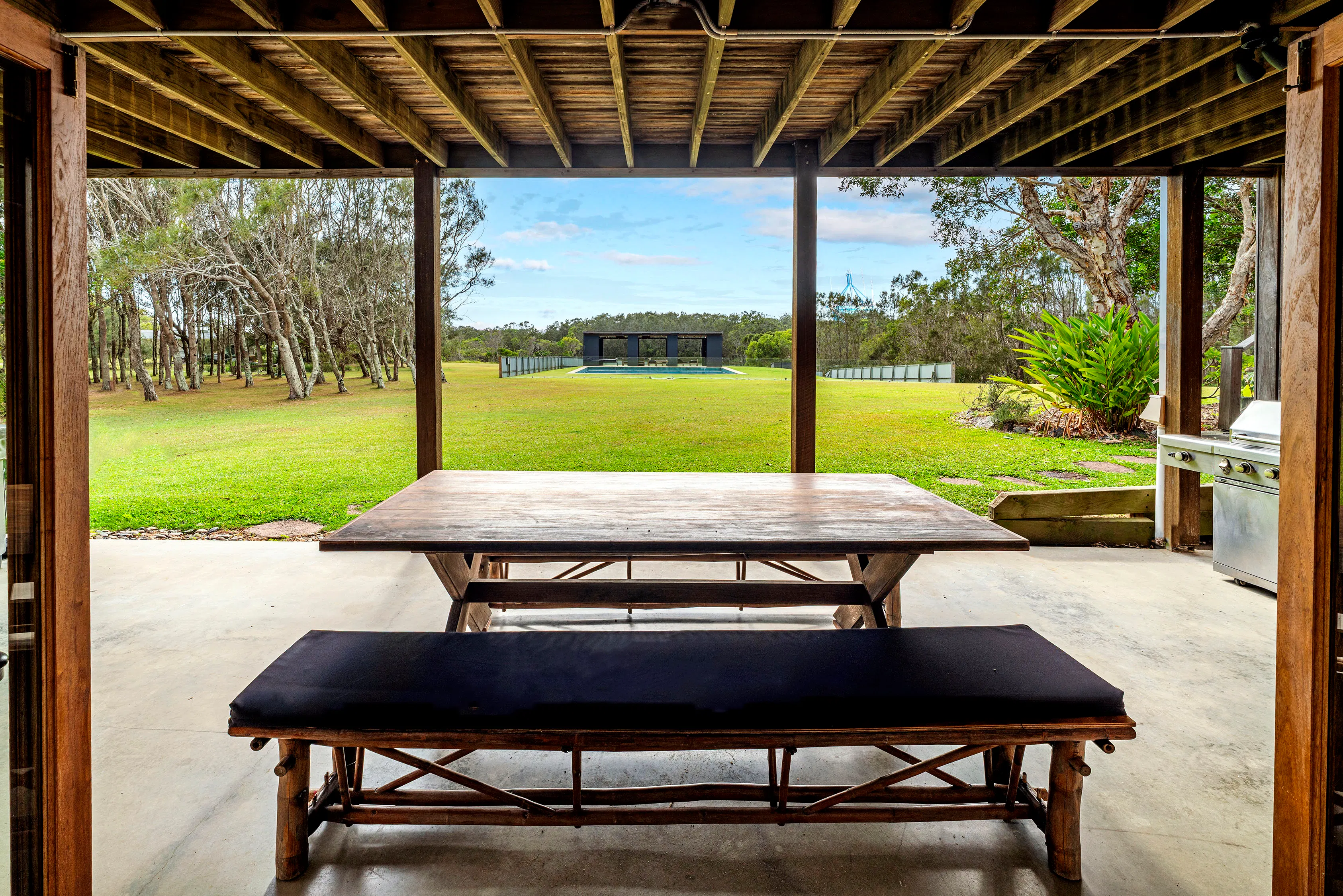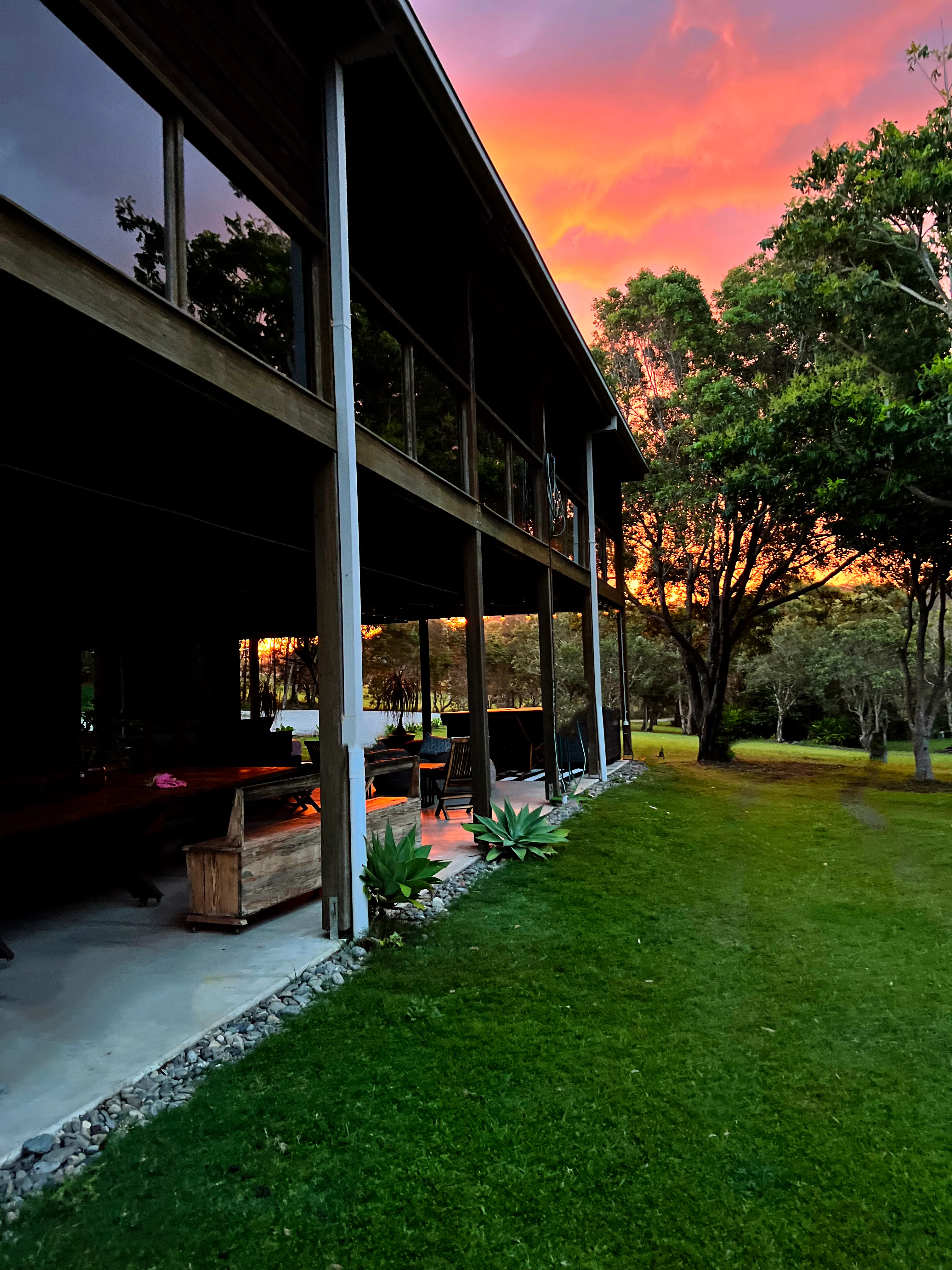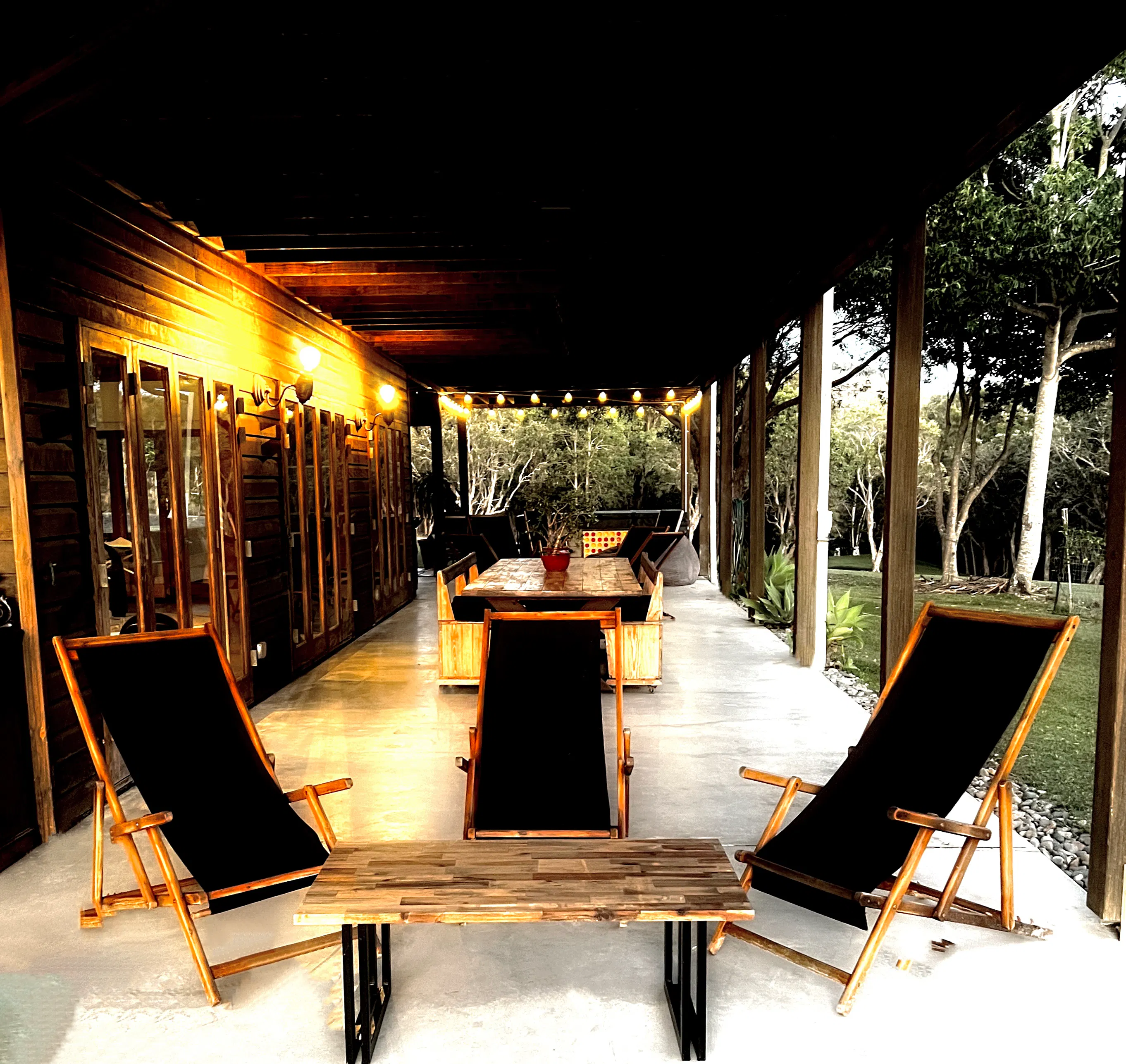 the studio is the ground floor of tranquilo beach house a unique locally loved beachfront property 14 acres perched on the edge of the solitary islands marine park , a billabong on the property, an abundance of wildlife … this is australia at its best.   The “ studio” a big open room that has a queen size bed and a single. tv ping pong sauna Bathroom kitchenette  opening onto the wrap around terrace with a pool table massage chair jacuzzi steps from the freshwater pool